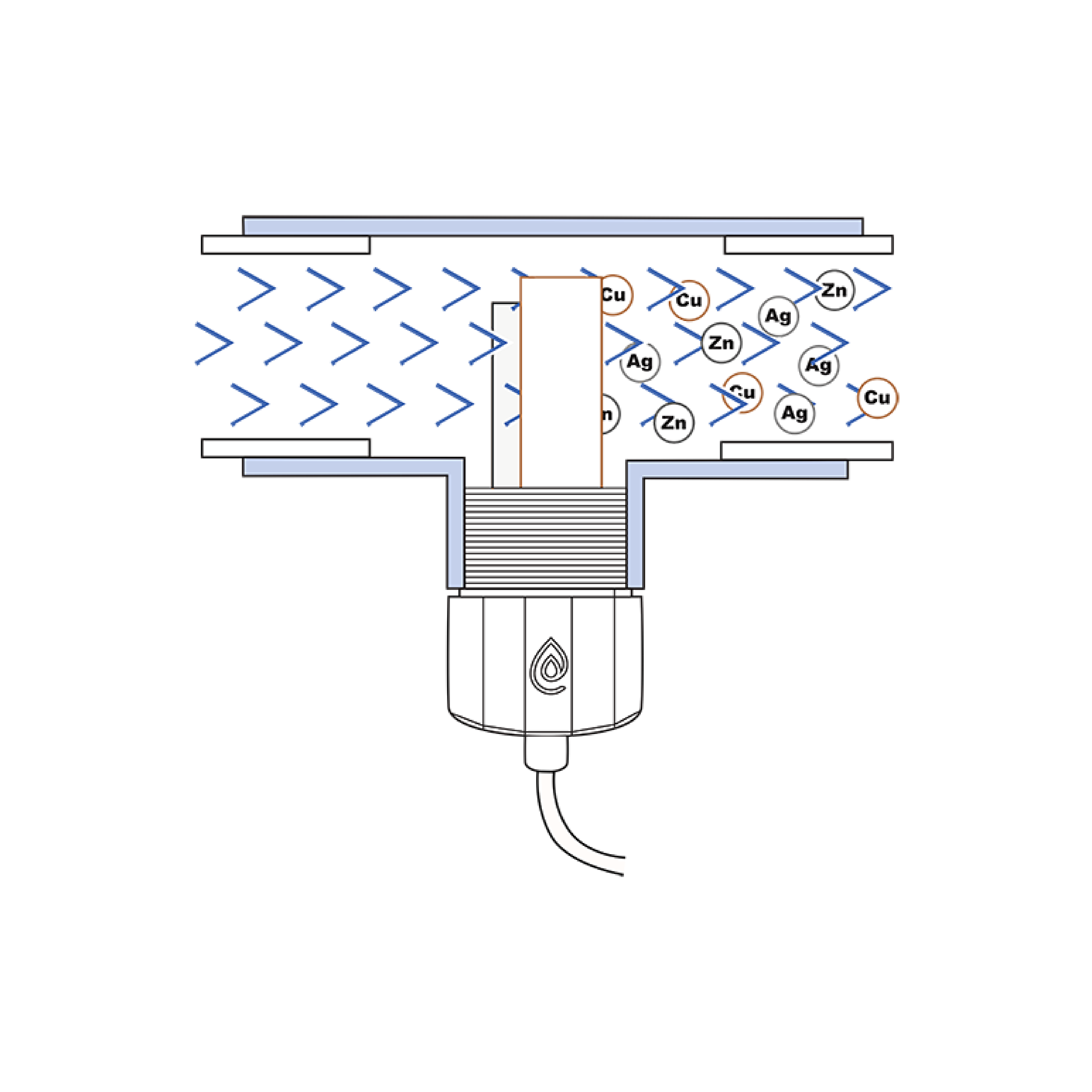 - Le courant de sortie continu compense pour des facteurs tels la température, la conductivité et salinité. Sans cette fonctionnalité, il peut y avoir une usure excessive des électrodes et un surplus d'ionisation, ou d’un autre côté, pas suffisamment d’ions de cuivre causant de grandes quantités de bactéries ou la croissance d’algues.